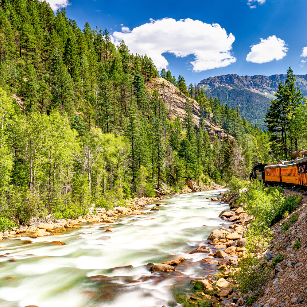 The train ride Silverton to Durango in CO has some amazing views and stops through the Colorado Rockies!