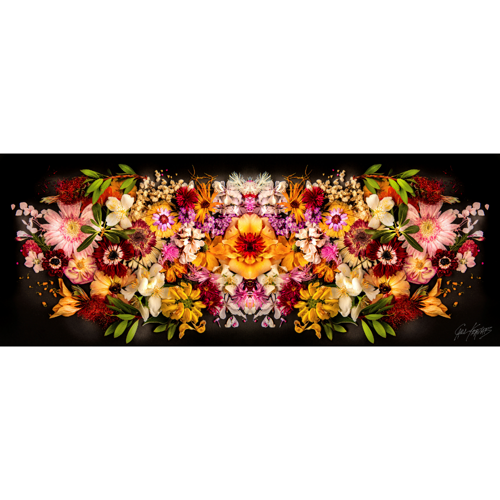 Dried, fresh and stolen…. well, not really stolen; borrowed. This took some time to but together…and of course, mirrored to make it even look like more. All done on a black surface. One of my very favorites.