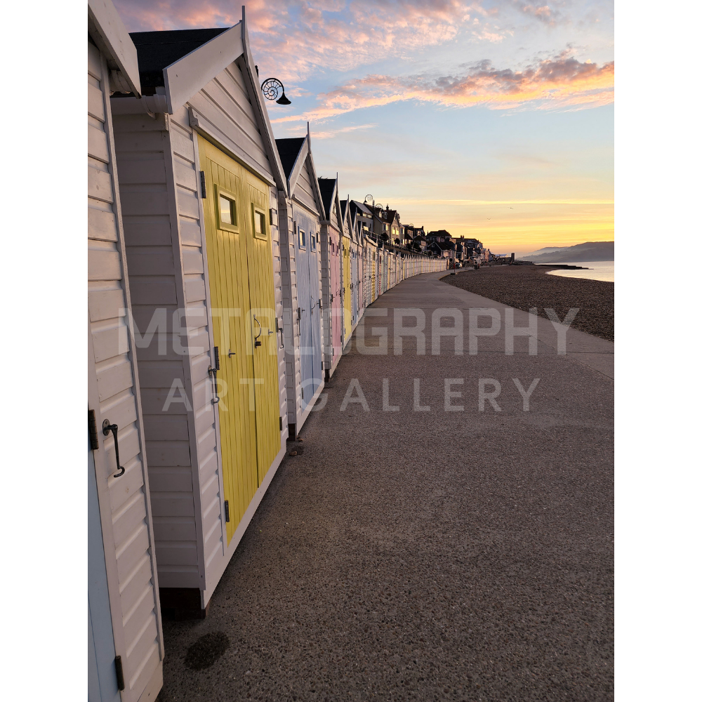 Strolling past Beach Huts in Lyme Regis, UK. These Iconic huts dot the Seaside communities of Great Britain standing ready to entertain families on their holidays.