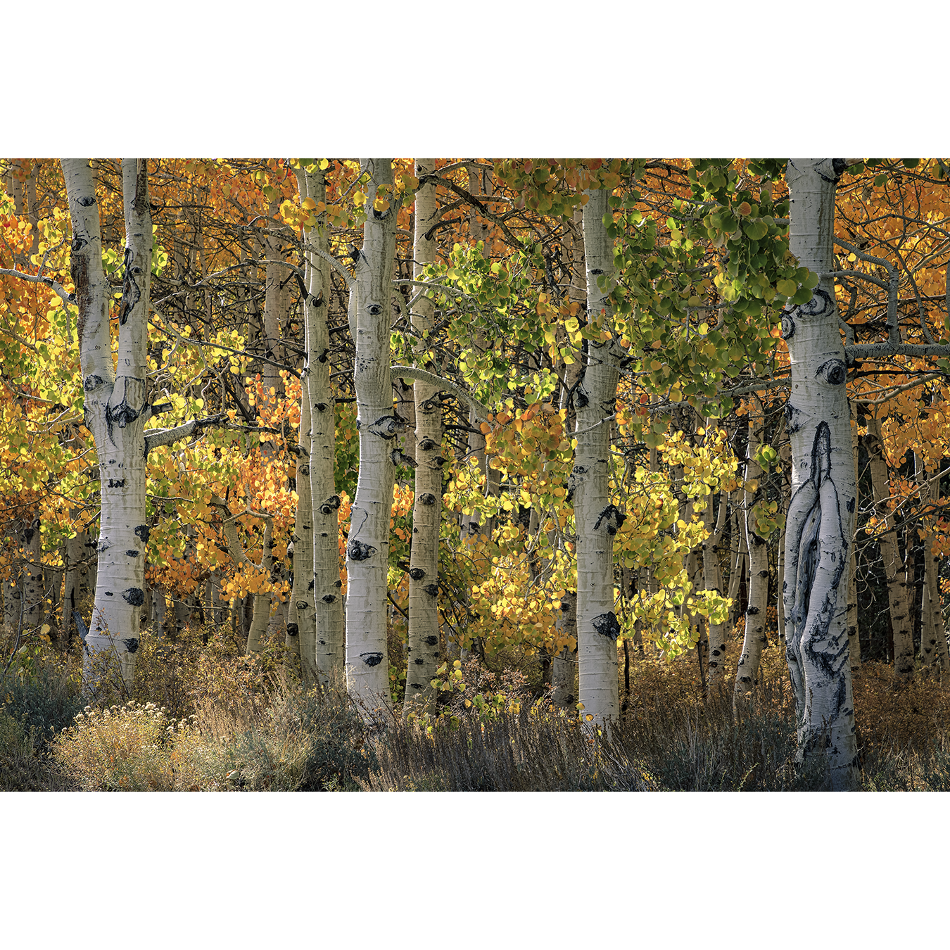 When people talk about fall color in the western US, they refer to the changing Aspen leaves. In Aspendell, a suburb of Bishop, California, I found a stand of Aspen that was peaking, as you can see the full range of color in this one section of trees. A couple hundred feet of elevation higher and the leaves were nearly gone, a couple hundred feet lower and there was no color shift. So, for this location it was perfect timing!