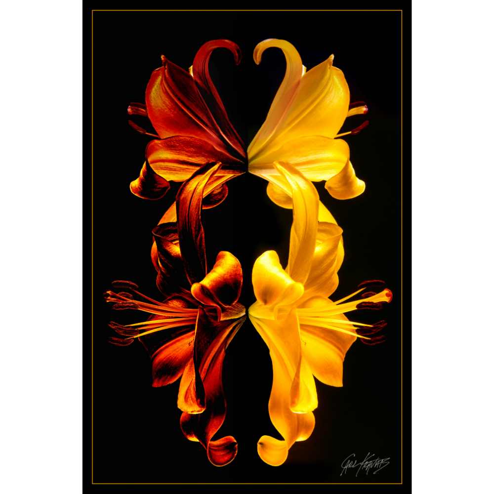 One of my early creations. Once I photographed the Lily, I experimented mirroring the photo and loved the look of the “Swan” like image. Then I saw the “heart.”…what more can I say?